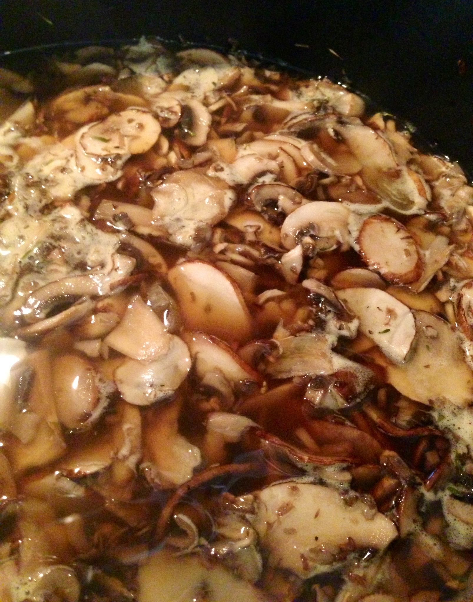 • mushroomsoupcooking1 box chicken stock (vegetable stock, if you’re a vegetarian)