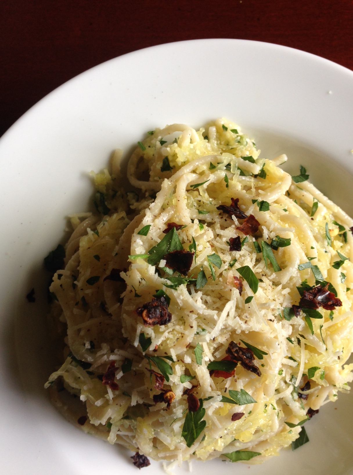 Spaghetti Squash Spaghetti with Parsley, Parmesan & Chile Oil
