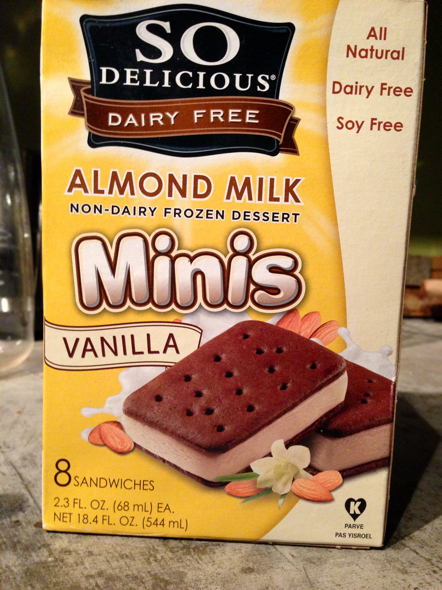 sandwich-box* The SO DELICIOUS brand of ice cream sandwiches make the perfect size small dessert. They can be found in the natural food freezer section of your grocery store.